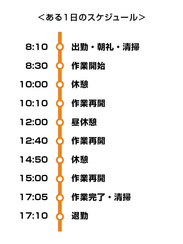| 勤務時間 | 8:10 ~ 17:10 |