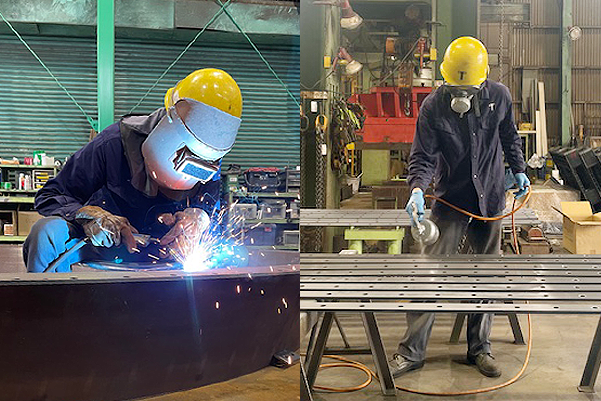 切断作業/曲げ作業/穴加工作業/組立作業/歪取り作業/検査作業/塗装作業/TIG溶接/アーク溶接/半自動溶接